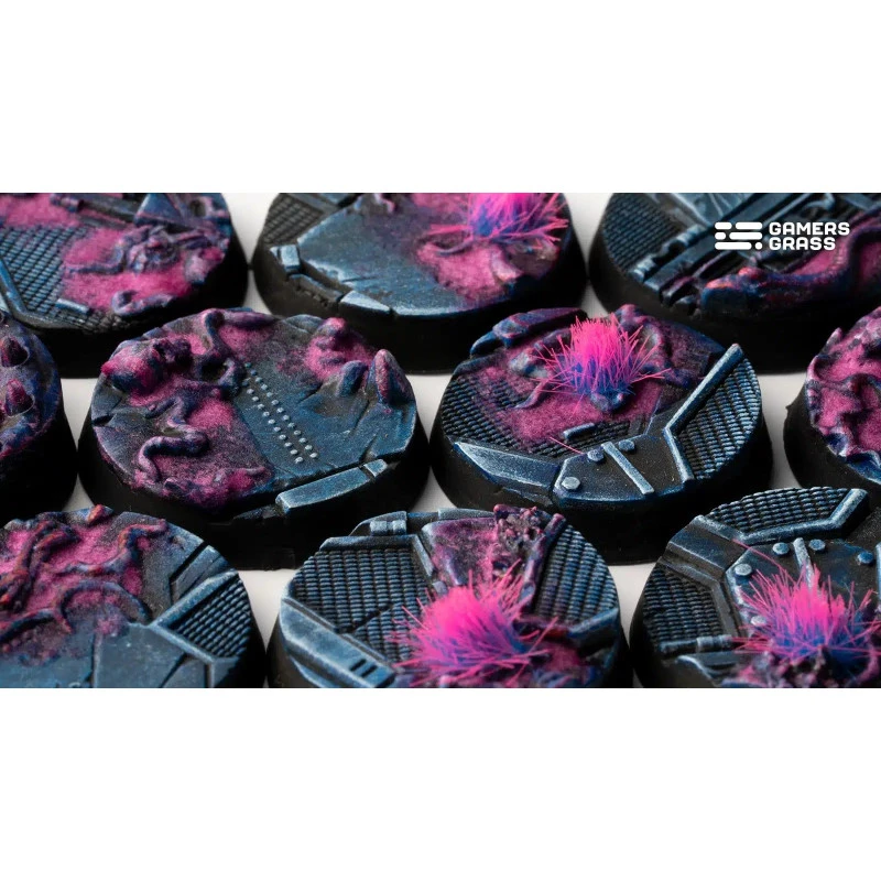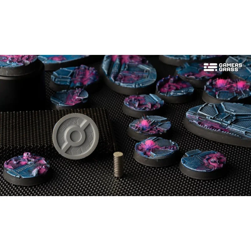 Ce blister contient 10 socles ronds thermoplastiques de 25 mm de large Battle Ready Bases, sur le thème de l’infestation extraterrestre.