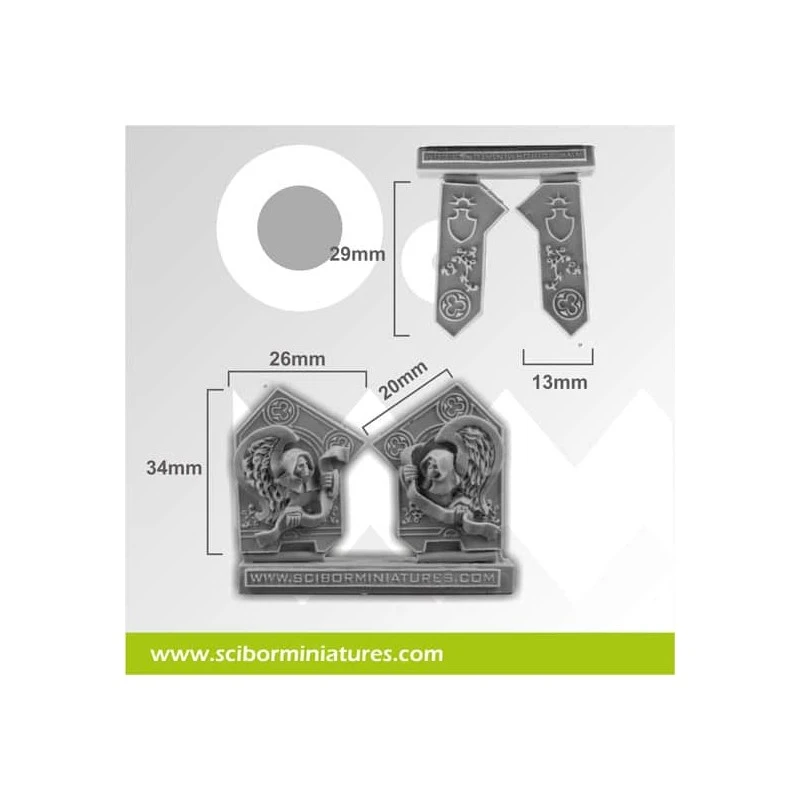 L’ensemble contient 4 plaques décorées. Un bon complément pour les bâtiments ou les véhicules. Moulés en résine.