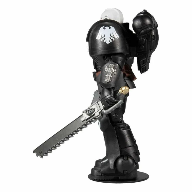 - Comprend un pistolet à balles lourdes, une épée à chaîne Astartes et un socle.