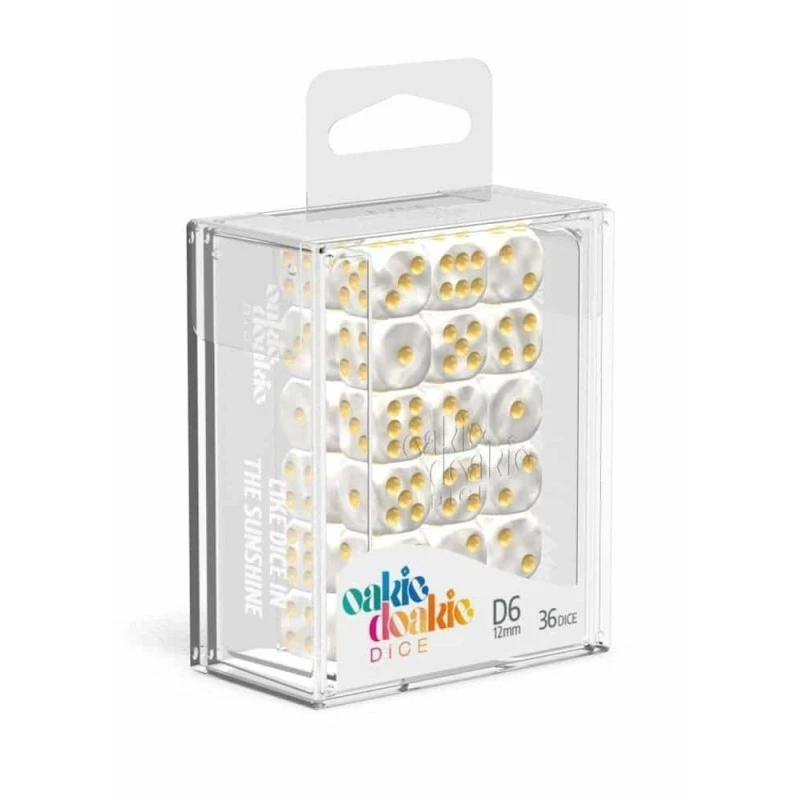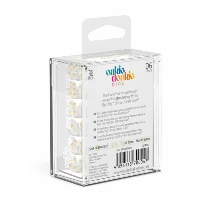 Les dés D6 sont disponibles en sets de 12 pièces (16 mm) ou 36 pièces (12 mm) et sont emballés dans une boîte rigide avec un tiroir amovible pour y accéder rapidement et jouer n’importe où.