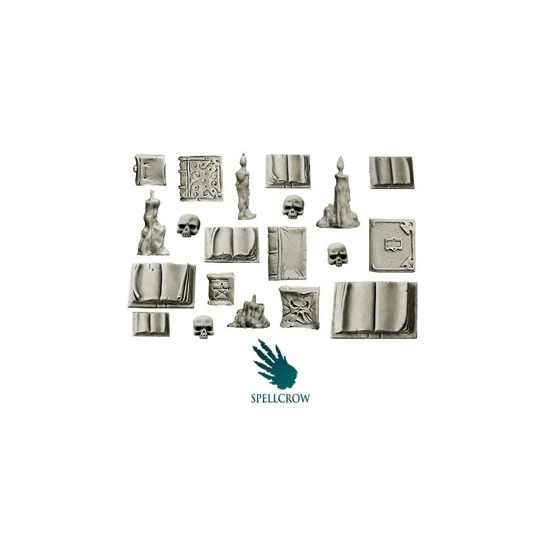 Le kit contient 6 livres ouverts, 6 livres fermés , 4 Crânes et 4 bougies.