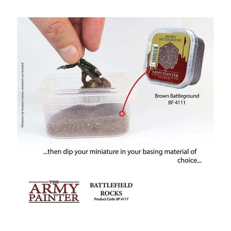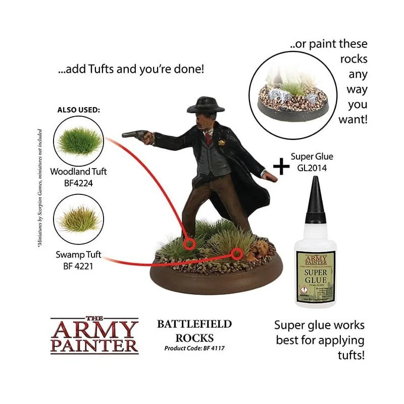 Utilisez Battlefield Rocks pour les plus petites pierres, donnant une texture parfaite sur les bases particulièrement grandes – pour rompre l’uniformité de l’aspect. Un aspect très réaliste !