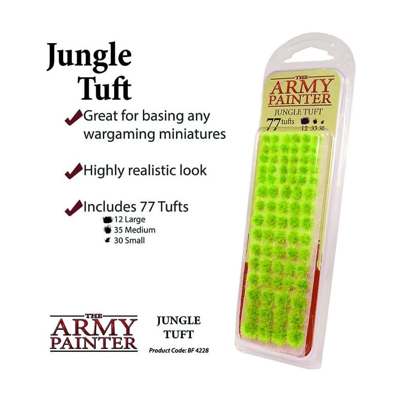 D’un vert vif et pleine de moustiques imaginaires, cette touffe imite fidèlement la jungle ou l’herbe printanière en début de saison.
