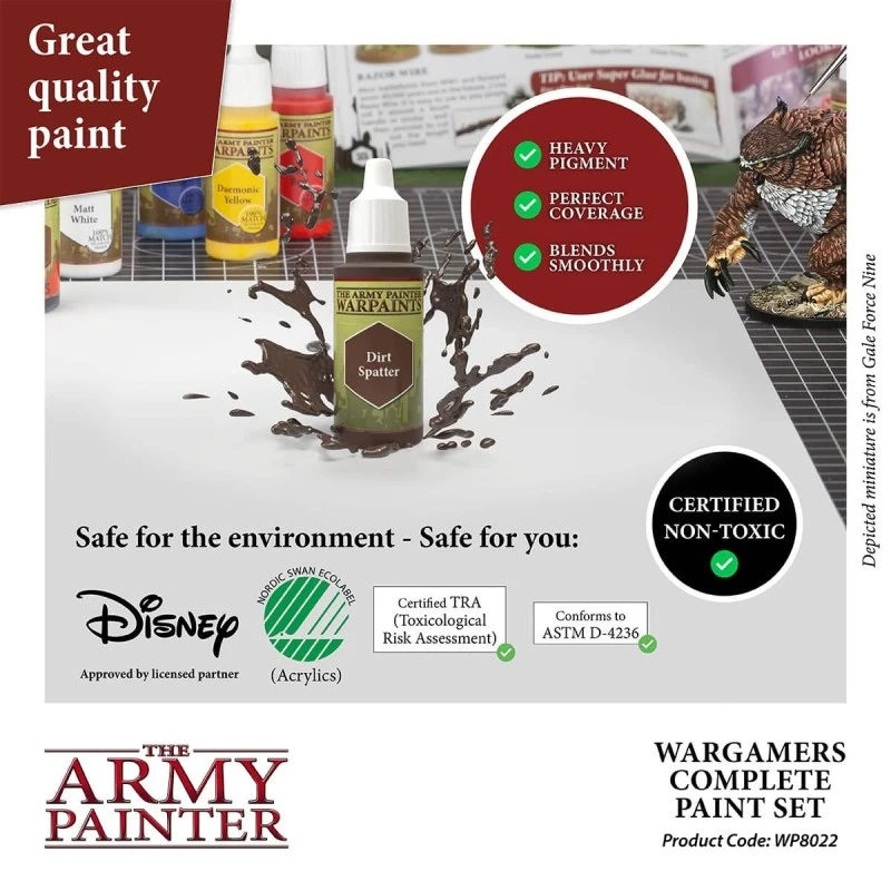 Le Complete Wargamers Paint Set comprend toutes les couleurs de la nouvelle gamme fantastique de The Army Painters. En tant que wargameur et peintre sérieux, vous trouverez dans cette boîte TOUT ce dont vous aurez besoin pour peindre n’importe quel type d’armée, quelle que soit la taille de la figurine ou le genre. Les peintures de guerre sont crémeuses et hautement pigmentées avec des capacités de mélange étonnantes, les lavis couvrent parfaitement et les métallisés sont les meilleurs de l’industrie. Il y a aussi 9 peintures à effets pour tout, du sang scintillant à la boue humide, la rouille sèche ou par exemple la bave dégoûtante !