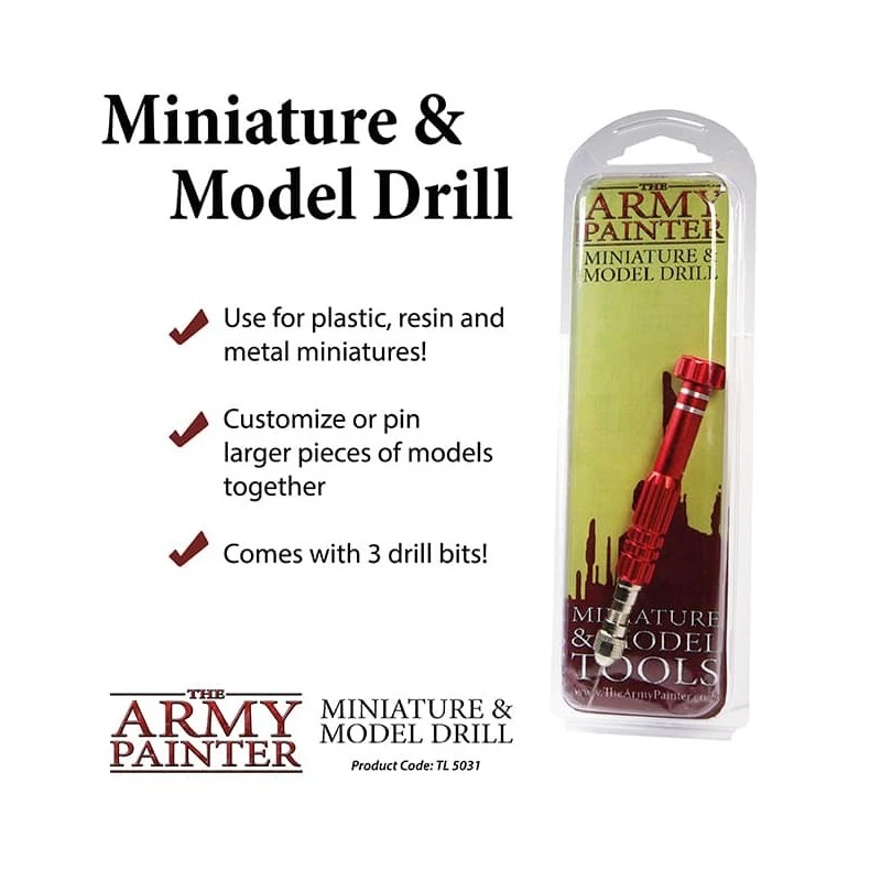La perceuse est un outil bien connu et précieux pour le convertisseur et le modéliste. Percez des trous dans les figurines en métal, en résine et en plastique avec les mèches fournies.