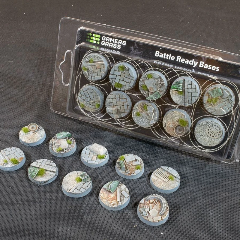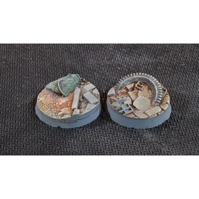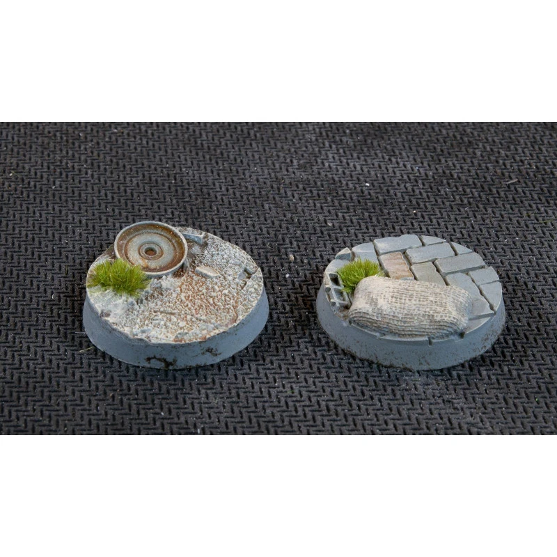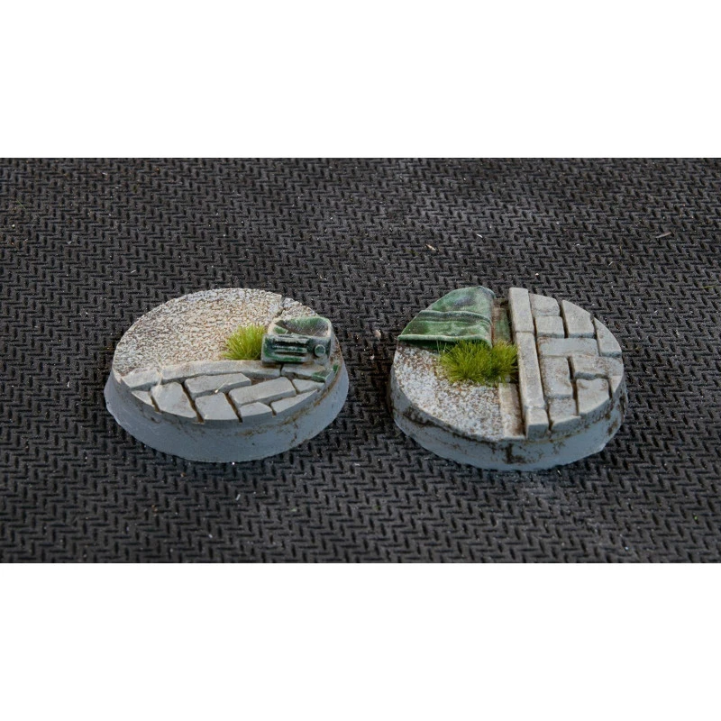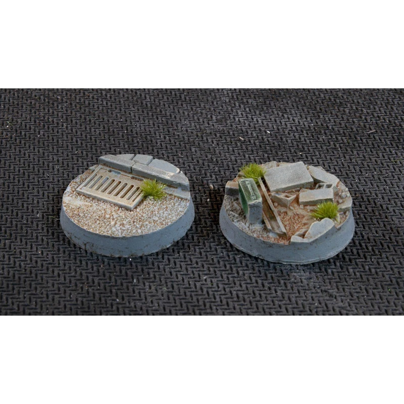 Ce paquet contient 10 socles ronds Battle Ready Bases de 25 mm de large sur le thème de la guerre urbaine.